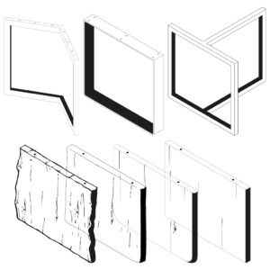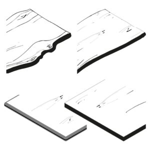 Bords Live edge accentué, Live edge léger, arrondis, droits
